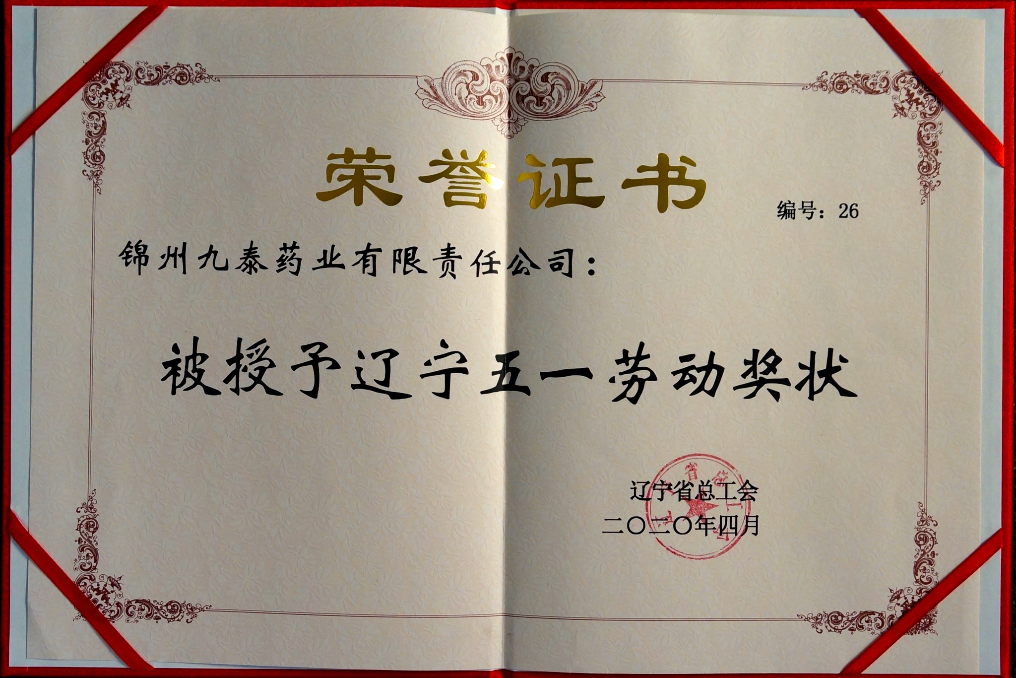 2020年4月,公司被遼寧省總工會(huì)授予“五一勞動(dòng)獎(jiǎng)狀”榮譽(yù)稱號(hào)。