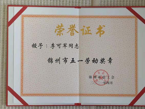 日,李可軍董事長(zhǎng)榮獲“錦州市五一勞動(dòng)獎(jiǎng)?wù)隆睒s譽(yù)稱號(hào)。